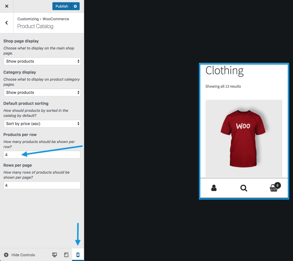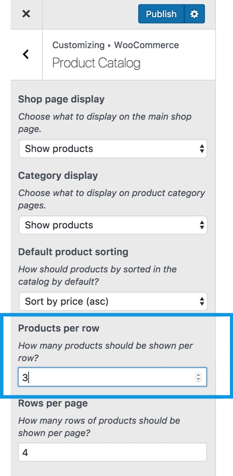 Products per Row allows you to choose the number of items that appear in a single row on Shop and Category pages.